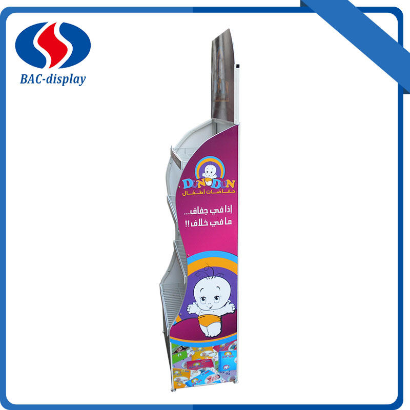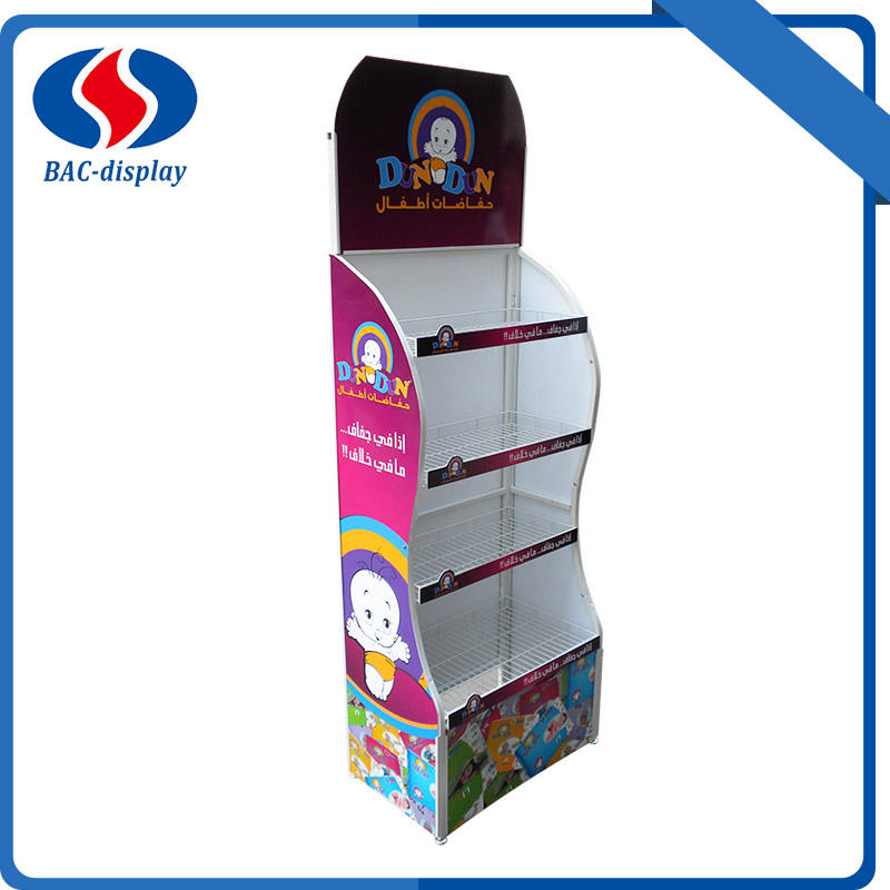 Màn hình sàn tã này được sử dụng trong các cửa hàng chăm sóc trẻ em và siêu thị để bán các sản phẩm tã trẻ em và các sản phẩm chăm sóc trẻ em khác. Logo tác phẩm nghệ thuật đẹp giúp khách hàng dễ dàng nhìn thấy sản phẩm của bạn trong một cửa hàng. giành được nhiều khách hàng hơn cho bạn. Đóng gói bằng foled giúp màn hình tiết kiệm rất nhiều không gian cho việc vận chuyển. Giỏ sẽ làm cho hàng hóa sạch sẽ hơn khi đặt túi vào.